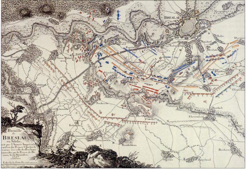 11月13日,腓特烈開始向東行軍,他派他的弟弟亨利親王守衛薩克森,基斯元帥則帶9000人去波希米亞聲東擊西。基斯的行動引起了奧軍總指揮的注意,這位總指揮撤出了路薩提亞,要去攔截普軍。11月13日,腓特烈帶著1.3萬人從萊比錫出發,經托爾高到達莫爾貝格(Mühlberg)。11月18日他到達格羅森海因(Grossenhayn)的時候,收到施維德尼茨失守的消息。11月21日他在鮑岑又瞭解到從哥爾利茨(Görlitz)到西里西亞的通路已經大開,他便繼續行進,決定要在他的副官遭遇到更多困難之前聯繫上他。他們繼續經由魏森貝格(Weissenberg),在瑙姆貝格要跨過懷斯河(Queiss)的時候,腓特烈接到了佈雷斯勞城外的戰役失敗,隨後貝文被克羅地亞人俘虜的消息。同時他也知道了剩下的軍隊正橫渡奧德河,向格羅高撤退消息。於是在出發前,他命令佈雷斯勞軍在12月2日到帕爾奇維茨(Parchwitz,英文該是Prochowice?反正這地兒現在歸大波波)與他會合。基奧(Kyau)將軍暫時指揮這支軍隊,很快腓特烈就下令讓錫頓(Zieten)接替指揮。11月26日普魯士軍離開瑙姆貝格,到達羅貝道(Lobedau)時腓特烈獲悉佈雷斯勞失守。對腓特烈來說此刻前方黑雲壓境,而他要對佈雷斯勞城外的奧軍以牙還牙的決心前所未有地堅定起來。據說他曾經說過:「若他們站到佐頓山(Zobten)上,若他們站到佈雷斯勞的塔尖上,我就把他們打下來。」奧地利指揮官此時在佈雷斯勞及其周邊的兵力有8萬人以上,收到腓特烈決心與他們一戰的消息時驚訝不已,難以置信地問:「他難道要憑他那波茨坦衛兵檢閱(Potsdamsche Wacht-Parade)把我們趕出西里西亞嗎?」此時在裏格尼茨(Liegnitz)還有一小股駐軍,但腓特烈在於錫頓匯合過程中並沒有顧上他們。11月28日,疲憊的普魯士軍在15天內跋涉了180英里(即290公里)後,終於抵達了帕爾奇維茨。12月2日,錫頓帶著貝文的殘軍敗將如期而至。敗仗之後,這支軍隊的軍官們一直很害怕他們的君王會大發雷霆,但腓特烈並不想問責,他只想打敗洛林親王查理斯的奧軍,而要做到這點,他必須讓自己所有的軍隊都保持士氣。他將他們聚集在一起,賜他們紅酒,與他們一起回憶過去的戰役與勝利。而其餘的兵士則得到了額外的配給,並一起聽說了羅斯巴赫的勝利。儘管腓特烈現在聚集的軍隊僅僅有3.5萬人,但這些都是土生土長的普魯士人。12月3日,腓特烈終於擬好計畫,為即將開始的對峙備好所需物資,包括建橋裝備與10門由錫頓從格羅高帶來的12磅的厚管要塞炮,被稱為Brummers。