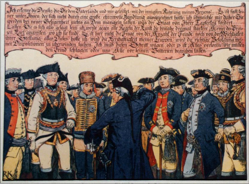 他決心要向軍官們宣告這生死一戰的關鍵性,於是召集了所有將領,團級以及營級的指揮到他的營地前。當時是12月3日的傍晚,腓特烈將要發表著名的帕爾奇維茨演說。